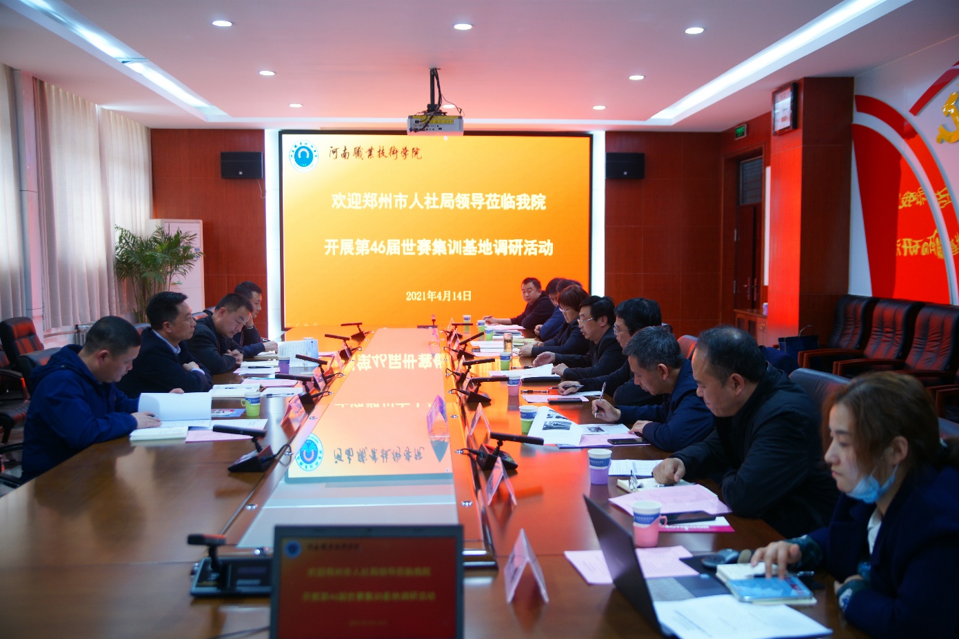 2021年4月14日下午,郑州市人力资源和社会保障局副调研员杨宇郑、职业能力建设处副处长王中亮及郑州市世赛工作推进组刘永明、王鹏等一行四人来我校世界技能大赛商务软件解决方案、家具制作项目郑州市集训基地调研指导第46届世界技能大赛集训等相关工作。院长梅乐堂、副院长肖珑、我校世赛相关赛项负责人及88858cc永利负责人参加了在行政楼332会议室举行的调研座谈会。同时到会的还有郑州铁路职业技术学院副院长倪居带领的第46届世界技能大赛轨道车辆技术赛项指导团队。座谈会由肖珑副院长主持。