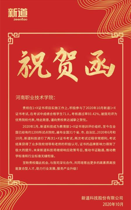 近日,从1+X业财一体信息化应用评价组织传来消息,我校商学院会计专业学生考证通过率达到93.4%,各项指标在所有参加考试的院校中居于前列,受到评价组织表彰。
