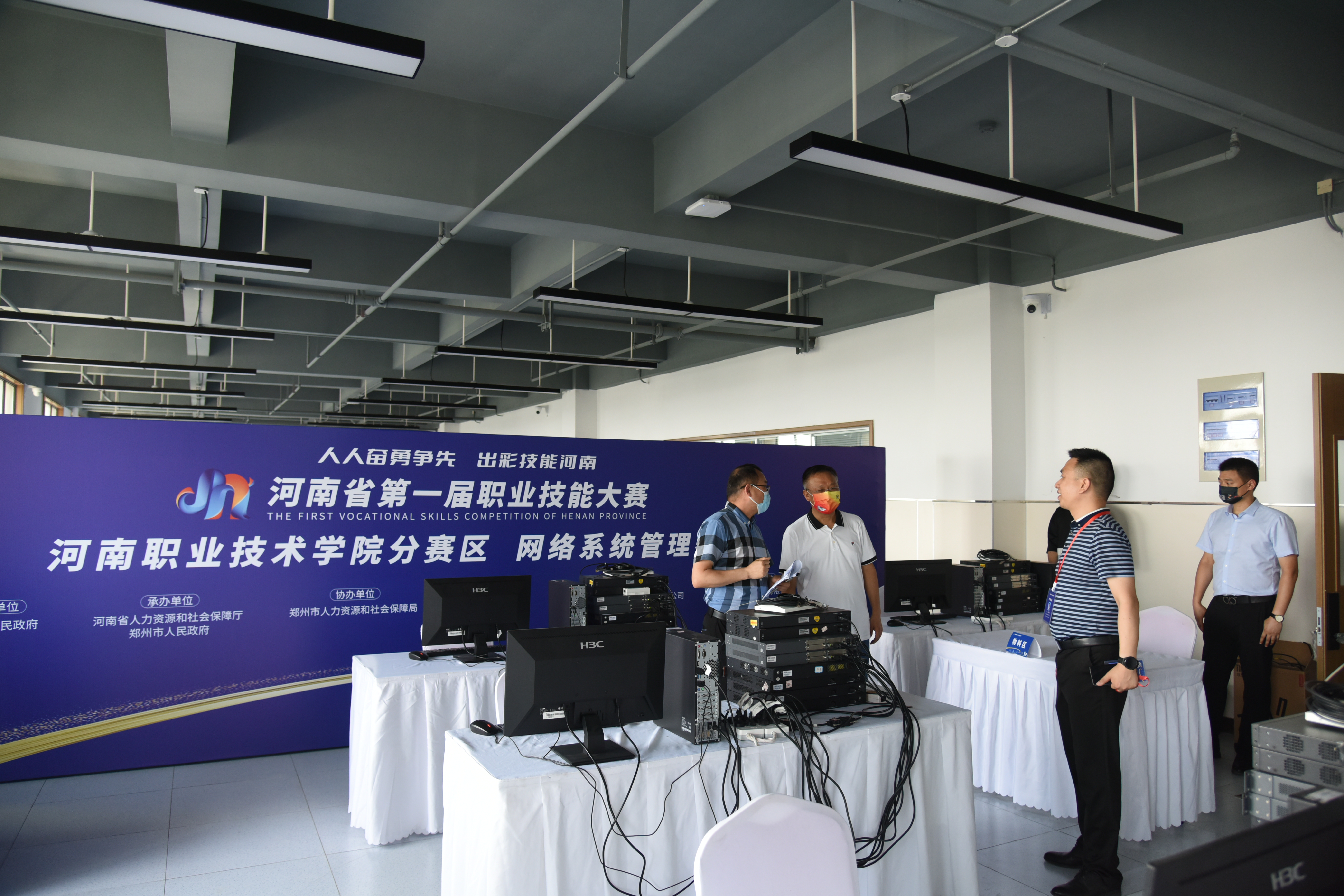 6月23日下午,省人力资源和社会保障厅二级巡视员吕志华、河南省职业技能鉴定指导中心主任任海军一行4人到河南职院检查河南省第一届职业技能大赛网络系统管理赛项准备工作。88858cc永利主任张凯、现代信息技术学院院长李纪云陪同。