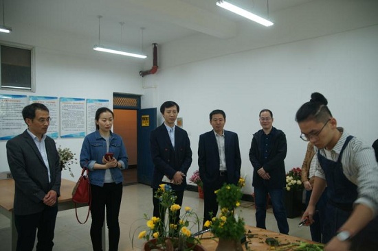 4月17日上午,中残联就业指导中心职业能力建设处王宁副处长,李明科长,省残疾人就业服务中心吕建峰副主任,就业培训科李永生科长一行在88858cc永利张凯主任陪同下考察我院实训基地建设情况。