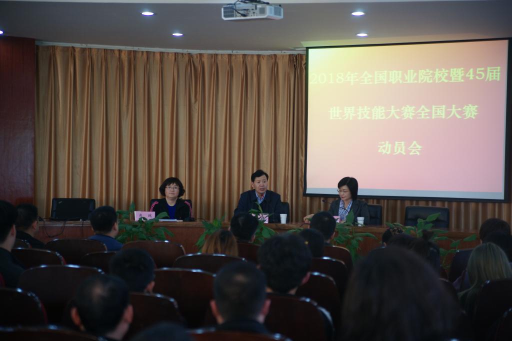 4月16日下午,我院2018年全国职业院校暨45届世界技能大赛国赛动员会在行政楼圆形会议室召开。学院李四清书记、李桂贞校长、肖珑副校长出席了会议。参加会议的还有参赛选手、指导教师及相关二级学院负责人。