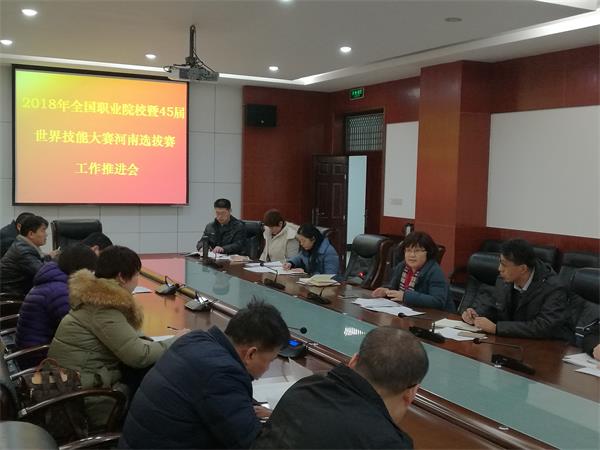 1月31日上午,我院在行政楼A303召开2018年全国职业院校暨45届世界技能大赛河南选拔赛工作推进会。学院各教学单位大赛负责人、部分指导教师、校产管理处、财务处、后勤管理处、公共鉴定实训基地、鉴定中心等相关负责人和工作人员参加了会议。会议由副院长肖珑主持。