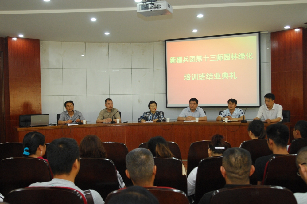 5月27日上午,2015年新疆兵团第十三师园林绿化培训班结业典礼在我院举行。省人社厅规划财务处调研员张水泉和主任胡宏波及肖珑副院长出席典礼。环境艺术工程系副主任司志国、公共实训鉴定基地办公室副主任吉武俊、培训学员及承担教学任务的部分老师参加了典礼。结业典礼由公共实训鉴定基地办公室主任张凯主持。