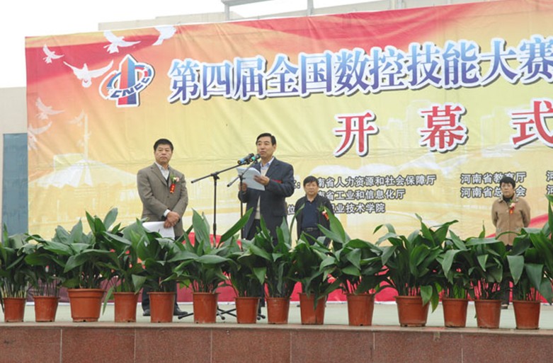 开幕仪式上,王爱群院长发表了热情洋溢的欢迎辞。省人力资源和社会保障厅副厅长李西斌作了重要讲话,他强调,此次大赛为加强我省高技能人才培养选拔工作、推动企业技术进步、深化职业院校教育改革和校企合作提供了一个平台。希望参赛选手取得优异成绩,展示我省数控技术的最高水平,体现职业院校高技能人才培养成果。