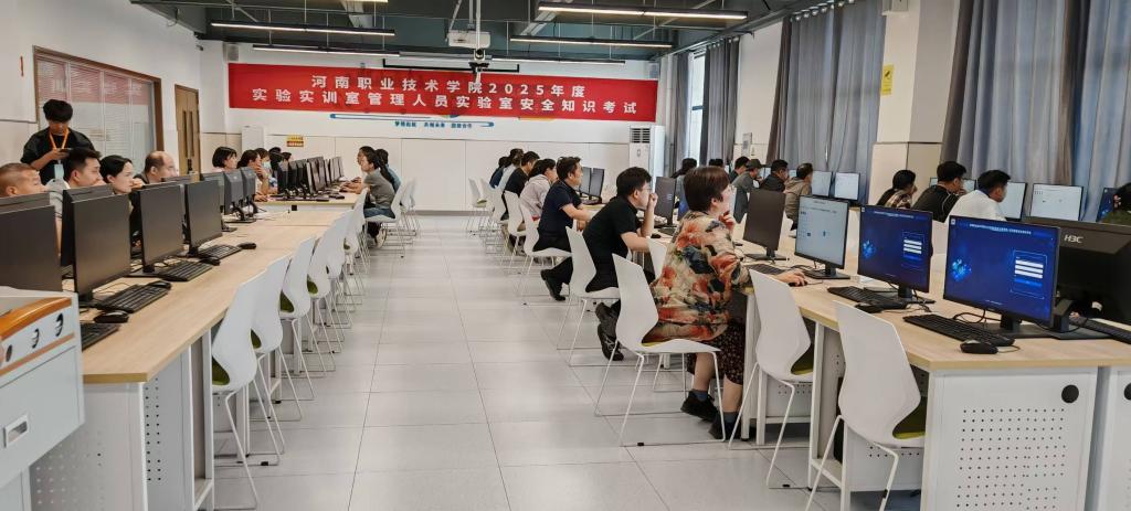 为积极响应校党委关于提升实验实训管理人员业务素质的重要指示精神,进一步强化实验实训室管理人员的安全责任意识和应急处置能力,河南职院于4月28日下午组织各二级单位实验实训室管理人员近50人开展了2025年实验实训室安全知识考试。